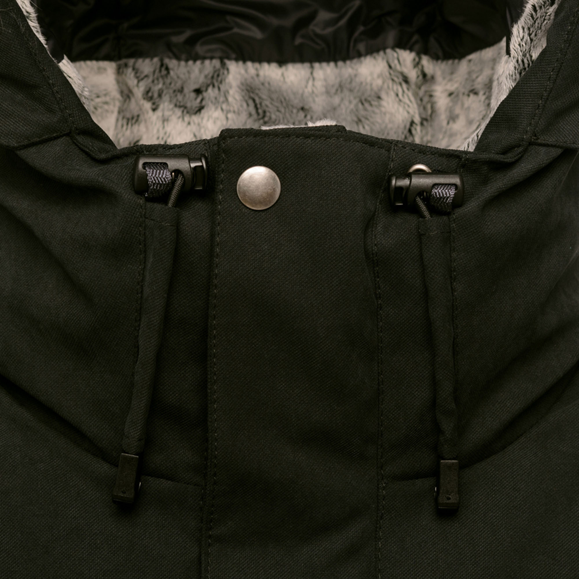 - Втачной капюшон-тубус регулируется эластичным шнуром с фиксатором
